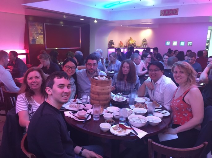 It isn’t every day that you sponsor a young Chinese woman who is working on a class project and decides to organize a Dim Sum Lunch. Lillian arranged it and we enjoyed it. There was enough food for a small army. We met some lovely people and had some laughs. We learned the proper way to eat soup dumpling (bite off the top, suck out the soup, add sauce if you like, chew) and the history of the six dumplings we tried. All very educational and delicious. 100 Mott Street. She says they are the most authentic.